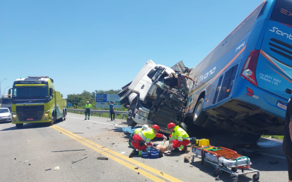 Em razão do acidente, a pista permanece totalmente interditada nos dois sentidos. A ocorrência é atendida pela Polícia Rodoviária Federal e pela Ecovias Sul, no trecho entre Pelotas e São Lourenço do Sul.
