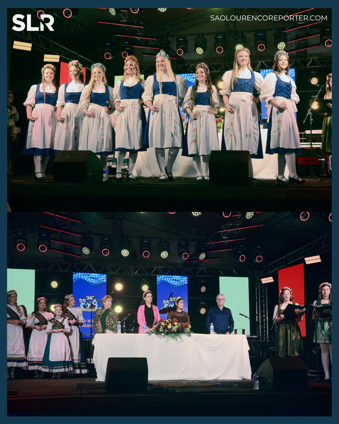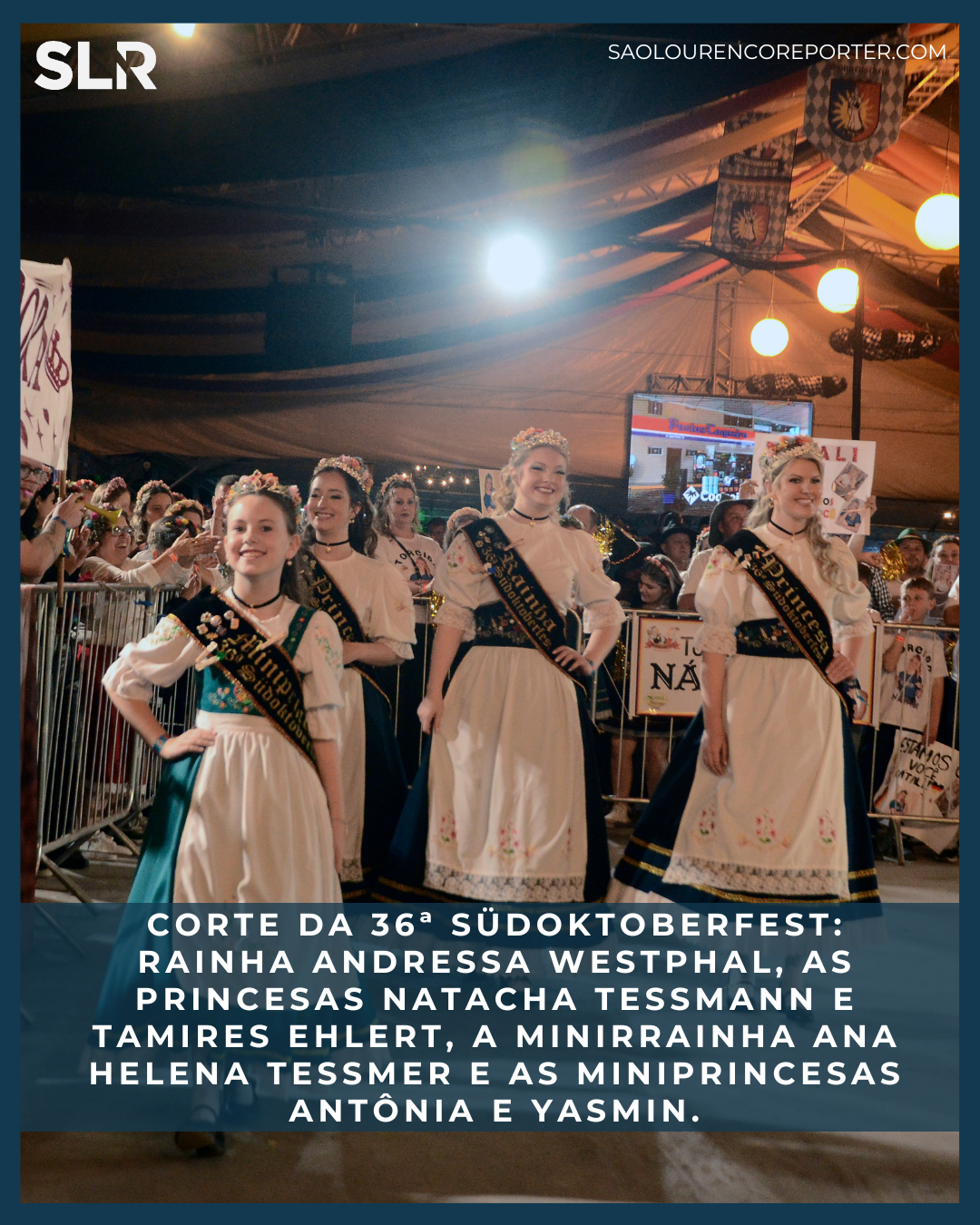A sexta-feira (10) foi de muita emoção na 36ª Südoktoberfest! Um dos momentos mais esperados da programação foi o Concurso da Corte para a 37ª edição da festa. E aí, para quem a Rainha Andressa Westphal, as Princesas Natacha Tessmann e Tamires Ehlert, a Minirrainha Ana Helena Tessmer e as Miniprincesas Antônia e Yasmin vão passar a faixa?